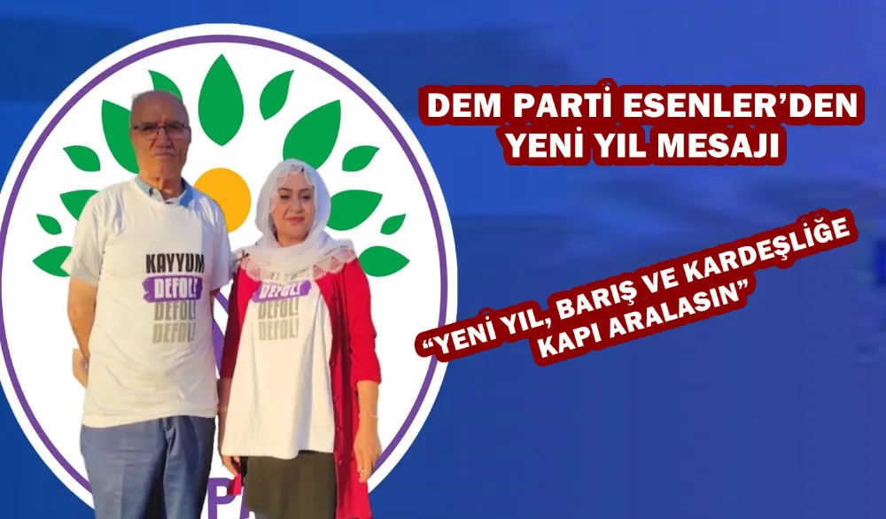 DEM Parti Esenler İlçe Eş Başkanları, mesajlarını barış ve kardeşlik vurgusuyla tamamladı. Mehmet Önal, “Halkların özgürlüğü ve sosyalizm için mücadeleden bir an bile geri durmayacağız. Yeni yılın Türkiye’de, Ortadoğu’da ve dünyada barışa, özgürlüğe ve demokratik bir geleceğe kapı aralamasını diliyor; mücadele eden tüm halkların yeni yılını kutluyorum ve Yeni Yıl, Barış ve Kardeşliğe Kapı Aralasın” dedi.