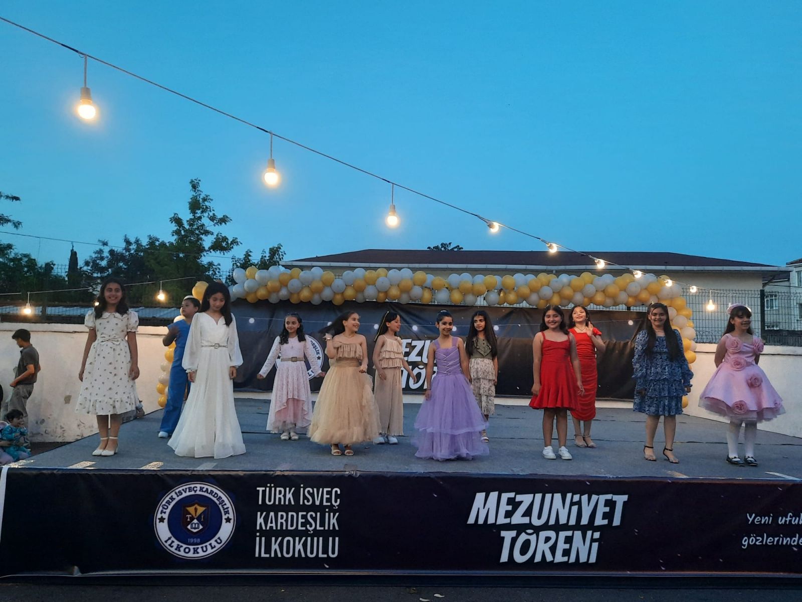Törenin en dikkat çeken bölümlerinden biri, mezun olan öğrencilerin sergilediği birbirinden renkli ve etkileyici gösterilerdi. Her sınıfa ayrı ayrı sahne süresi tanındı; öğrenciler öğretmenlerinin rehberliğinde farklı temalarda dans gösterileri, şiirler ve küçük tiyatro oyunları sahneledi. Minik öğrencilerin sahnedeki özverili performansları, izleyenlere hem neşe hem de duygusal anlar yaşattı.