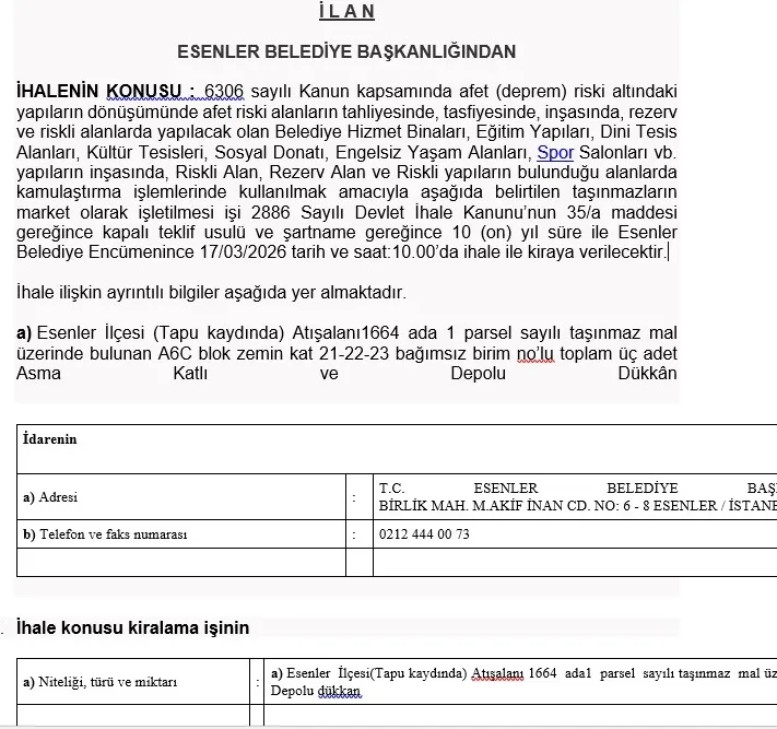 Esenler’de bugün tartışılması gereken konu yalnızca bir ihale değildir. Asıl tartışılması gereken mesele şudur: Belediye mülkleri birer birer kiraya verilirken, muhalefet neden sessiz kalıyor?