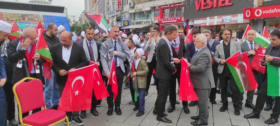 “Siyonizme Lanet, Gazze’ye Destek” çağrısı yapıldı, eyleme vatandaşlar yoğun ilgi gösterdi.