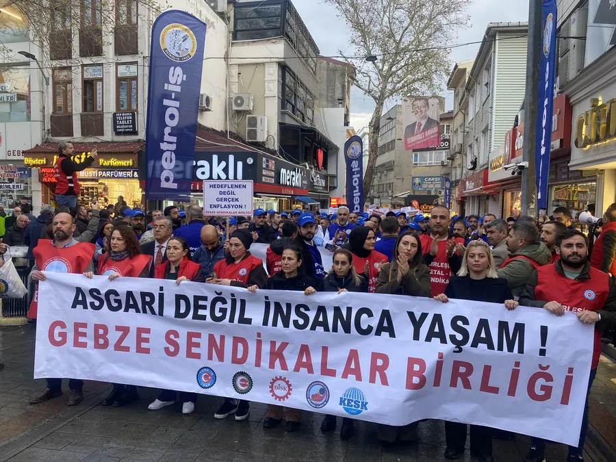 1989 yılında kurulan Türk-İş, Hak-İş, DİSK, KESK ve Birleşik Kamu-İş konfederasyonlarına bağlı sendikaların ve TMMOB üyesi odaların da içinde yer aldığı Gebze Sendikalar Birliği, artan hayat pahalılığı ve yaklaşan asgari ücret görüşmeleri öncesinde Gebze Kent Meydanı’nda bir basın açıklaması düzenleyerek taleplerini sıraladı. Mitinge dönüşen açıklamaya Emek Partisi Genel Başkanı Seyit Aslan da katıldı. Açıklamayı okuyan Gebze Sendikalar Birliği Dönem Sözcüsü ve Birleşik Metal-İş Gebze 2 No’lu Şube Başkanı Necmettin Aydın, Türkiye’de milyonlarca işçinin kaderinin kapalı kapılar ardında belirlenmek istendiğini söyledi. Emek düşmanı politikalar sonucunda asgari ücretin artık bir taban ücret olmaktan çıkıp milyonlarca çalışanın ortalama ücreti haline geldiğini belirten Aydın, belirlenecek rakamın açlık sınırının altında kalmasının pazarlık konusu yapılamayacağını vurguladı. Açıklamada 160 bin işçiyi ilgilendiren Metal grubu toplu iş sözleşmesine dair insanca yaşanacak ücret taleplerinden vergide adalet talebine, Gebze’de 2’si çocuk 7 kadın işçinin yaşamını yitirmesiyle yeniden ortaya çıkan acil iş sağlığı ve güvenliği taleplerine yer verilirken ortak talepler için birleşik mücadele çağrısı yapıldı.