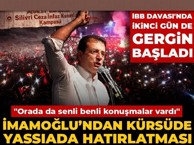 İBB Başkanı Ekrem İmamoğlu, duruşmada yargılamanın adil yürütülmesi çağrısı yaptı. İmamoğlu, süreci Yassıada’ya benzeterek “Burada da senli benli konuşmalar olmasın” dedi.