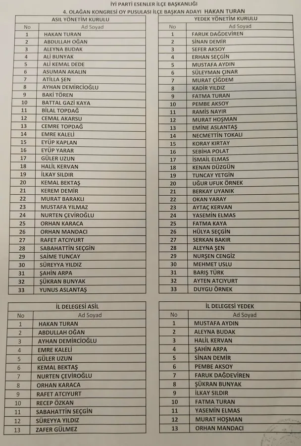 Açılış konuşmasını yapan İlçe Başkanı Hakan Turan, görev süresi boyunca yapılan çalışmaları anlatarak partililere ve destek veren herkese teşekkür etti. “Esenler’de İYİ Parti’nin sesi daha gür çıkacak” diyen Turan, yeni dönemde daha etkin bir teşkilat yapısıyla çalışacaklarını vurguladı.