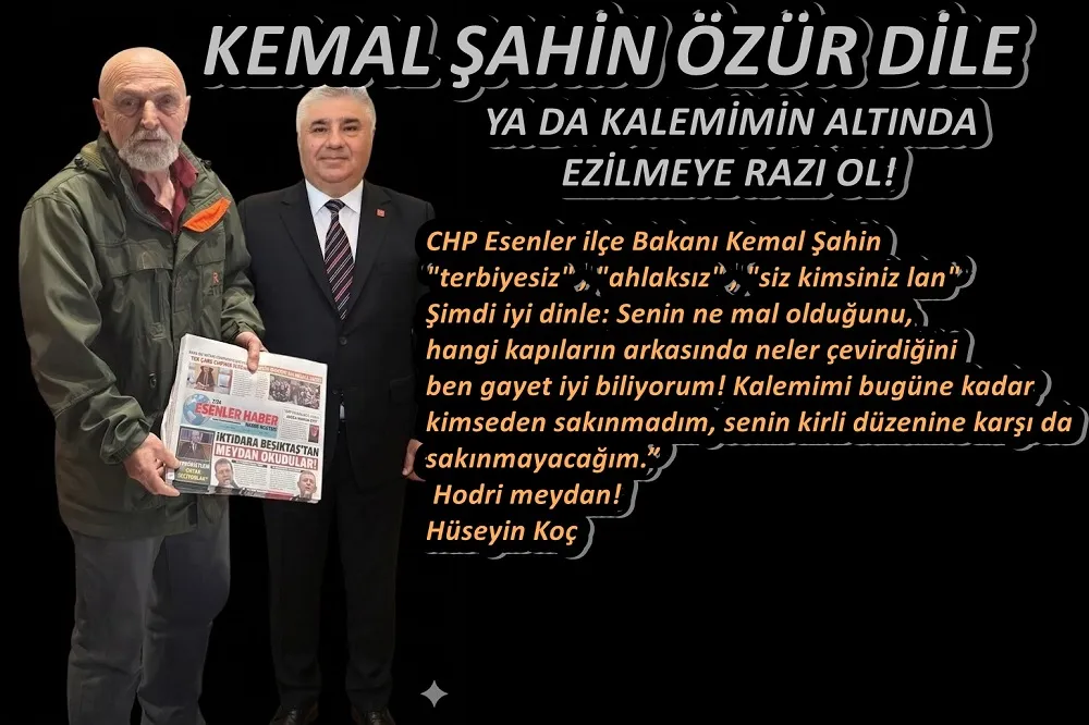 CHP Esenler ilçe Başkanı Kemal Şahin "terbiyesiz" , "ahlaksız" , "siz kimsiniz lan" Şimdi iyi dinle: Senin ne mal olduğunu, hangi kapıların arkasında neler çevirdiğini ben gayet iyi biliyorum!