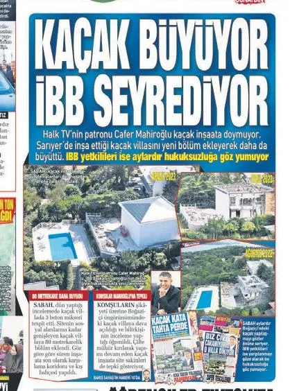 Doyumsuz Mahiroğlu Doymuyor yahu… Daha önce Çanakkale/ Asos'ta 'sit alanı' olarak kabul edilen alana yapıldığı ortaya çıkan et ve balık restoranının açılışını CHP Parti Meclisi Üyeleri ve milletvekilleri yapmıştı. Bu sefer ise durum başka, işin içinde İmamoğlu olduğu iddiası var. Her kirliliğin altında yatan kişi Halk TV patronu işadamı Cafer Mahiroğlu,. Özenmiş “Kaçak Saray” yapanlara , almış arkasına İmamoğlu’nu harama helale bakmadan götürüyor bu medya patronu. Meslek edinmiş rantı, soygunu uymuş talan düzenine, yağmalıyor…