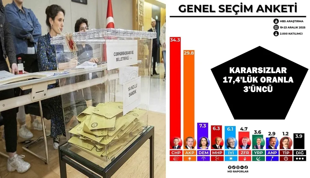 CHP Grup Başkanvekili Gökhan Günaydın, sosyal medya hesabı üzerinden Aralık ayına ait genel seçim anketi sonuçlarını kamuoyu ile paylaştı. HBS Araştırma Şirketi tarafından yapılan çalışmanın verilerini yayınlayan Günaydın, sonuçları değerlendirirken "kararsız seçmen" grubuna dikkat çekti ve partisinin yeni dönem stratejisine dair önemli mesajlar verdi.