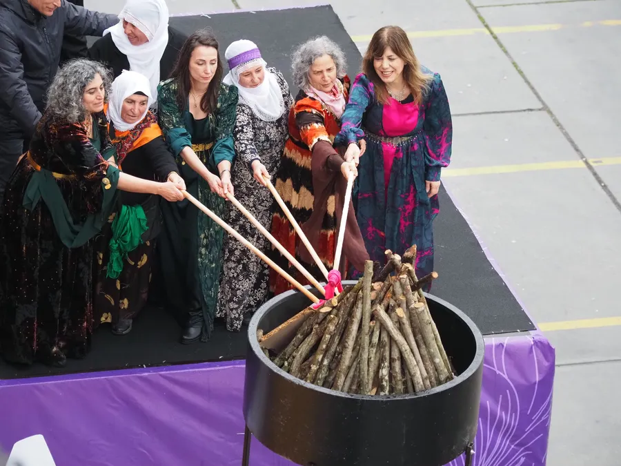 Yağışlı havaya rağmen çok sayıda kişi kutlamalara ulusal kıyafetlerle katılırken, alanda DEM Parti, TİP, SOL Partilerin ve DBP bayrakları dikkat çekti. Kapıların açılmasının ardından alana giren katılımcılar halaylar çekerek kutlamalara eşlik etti. Davul ve zurna eşliğinde süren etkinlikte renkli görüntüler oluştu.