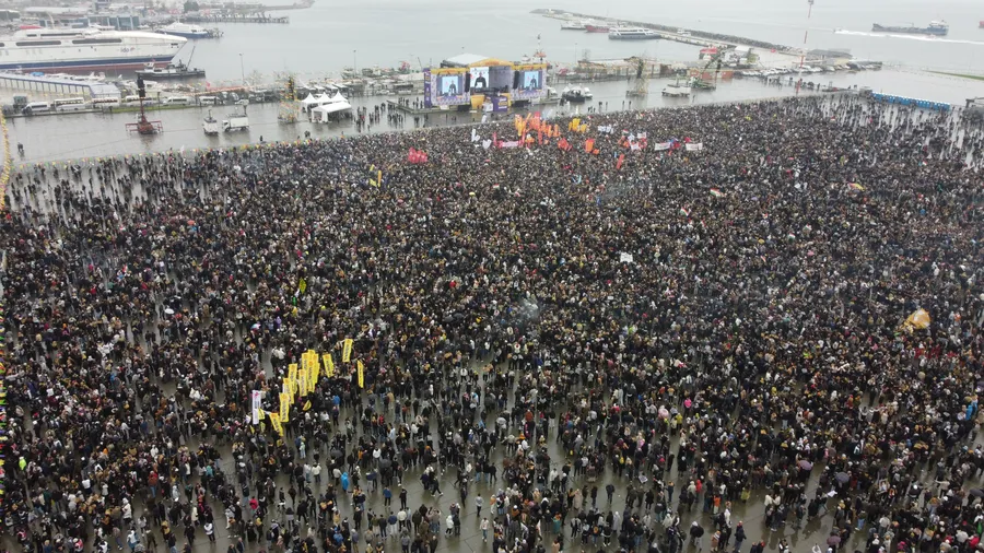 Alanda sloganlar atılırken, giriş noktalarında bekleyişin sürdüğü gözlendi. Kutlamalar devam ederken, alandaki yoğunluğun gün içinde artarak sürmesi bekleniyor.