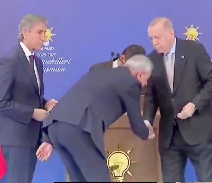 Budak, rozetini takan Erdoğan’ın elini öptü.