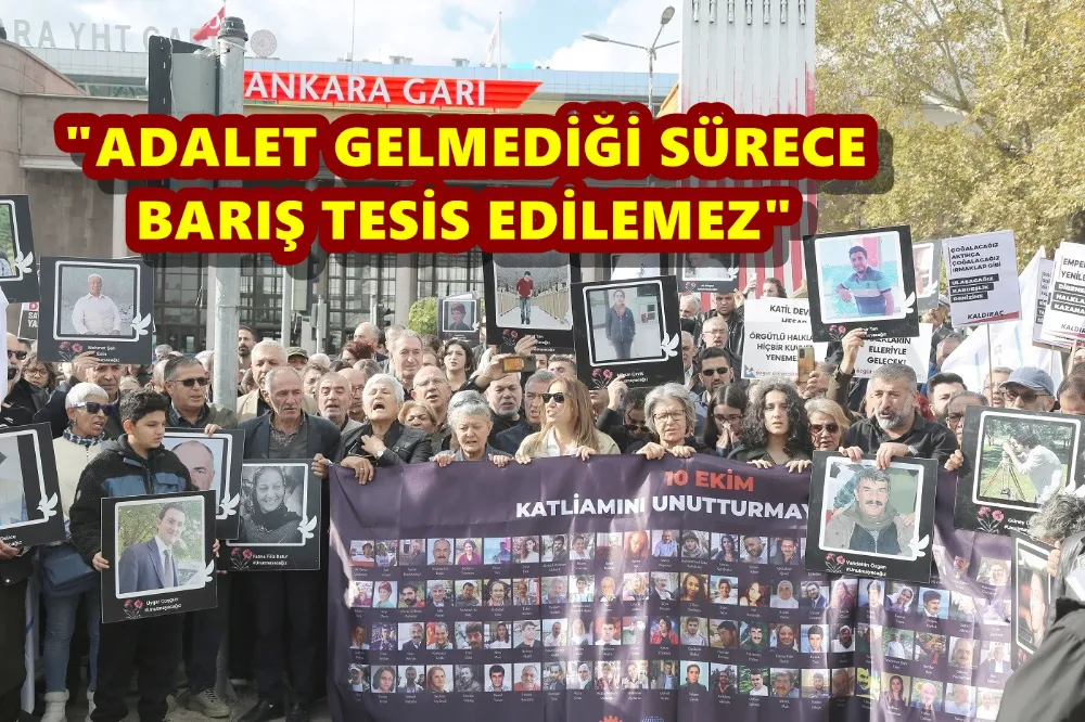 Basın açıklamasını 10 Ekim Barış Derneği Başkanı Avukat Mehtap Sakinci okudu. Sakinci açıklamada, "Bu ülkede barış, bu uğurda yaşamını yitiren 104 insan ve nicelerine adalet gelmediği sürece, barış tesis edilmiş olmayacaktır. 10 yıldır adalet dedik. Ama artık öyle bir noktaya geldik ki kararlar sinir uçlarımıza dokunuyor. Suçla bağlantısı olan herkes gün yüzüne çıkacak ve herkes hesap verecek. Hukuka aykırı kararlara rağmen adalet istiyoruz" dedi.