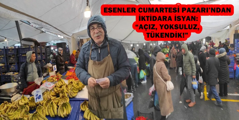 Esenler Cumartesi Pazarı’nda tablo net: İktidar pembe tablolar çizerken, halk açlıkla boğuşuyor. Pazardan yükselen ses, artık sabrın taştığını haykırıyor.