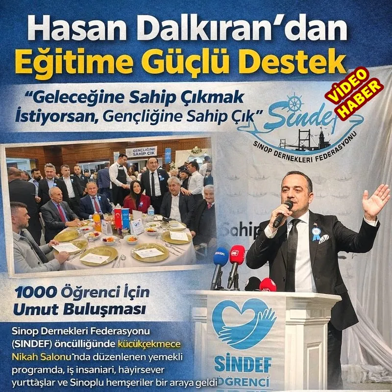 Sinop Dernekleri Federasyonu (SİNDEF) öncülüğünde Küçükçekmece Nikah Salonu’nda düzenlenen yemekli programda; iş insanları, hayırsever yurttaşlar, siyasetçiler ve Sinoplu hemşeriler bir araya geldi. Amaç netti: İmkânsızlıklar yüzünden hiçbir gencin eğitim hayalinden vazgeçmemesi.
