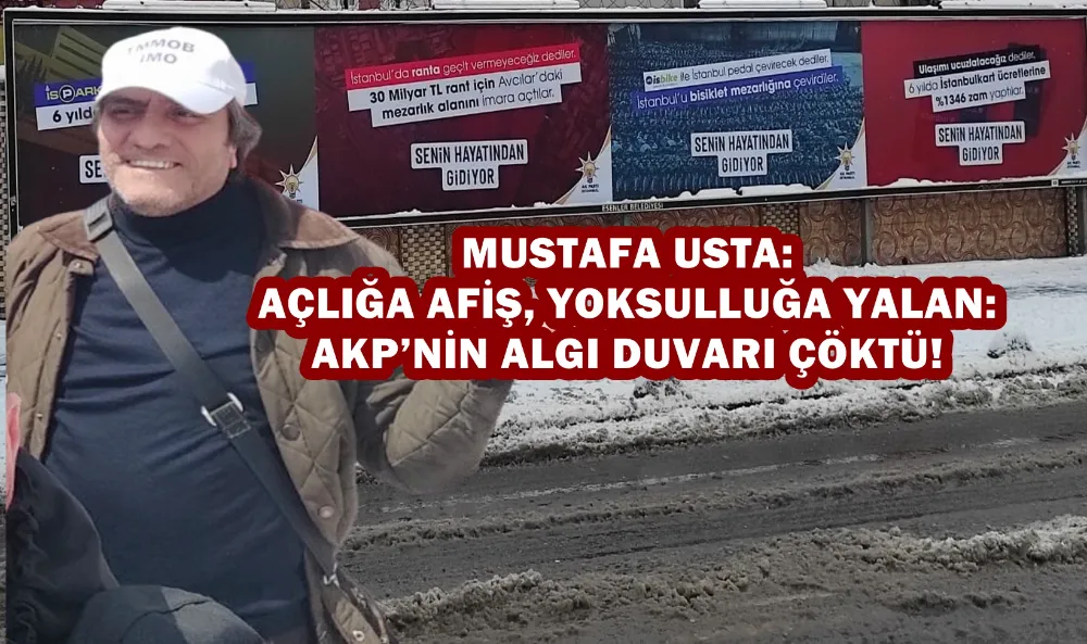 İnşaat mühendisi Mustafa Usta, ekonomik yıkımın derinleştiği bir dönemde bu afişlerin asıl amacının gerçeği gizlemek olduğunu belirterek, iktidarın algı siyasetinin çöktüğünü ifade etti.